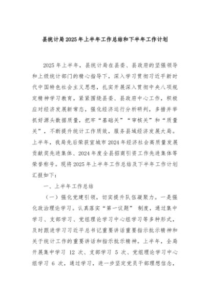 / 【七哥公文】2025年:县统计局2025年上半年工作总结和下半年工作计划+更多免费公文+VX:QiGeGongWen2024