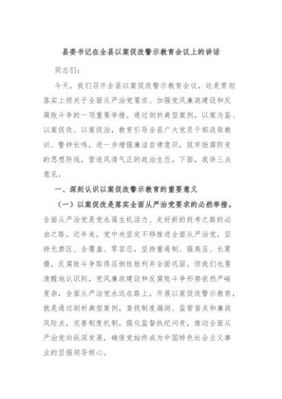 / 【七哥公文】2025年:县委书记在全县以案促改警示教育会议上的讲话+更多免费公文+VX:QiGeGongWen2024