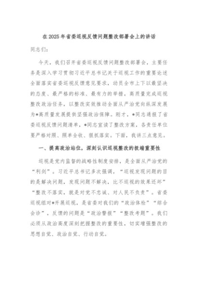 / 【七哥公文】2025年:在2025年省委巡视反馈问题整改部署会上的讲话+更多免费公文+VX:QiGeGongWen2024
