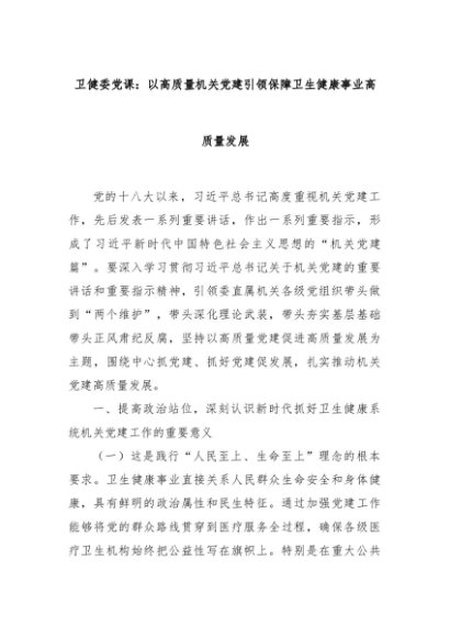 【七哥公文】2025年:卫健委党课:以高质量机关党建引领保障卫生健康事业高质量发展+更多免费公文+VX:QiGeGongWen2024