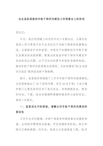 / 【七哥公文】2025年:在全县纵深推进年轻干部作风建设工作部署会上的讲话+更多免费公文+VX:QiGeGongWen2024