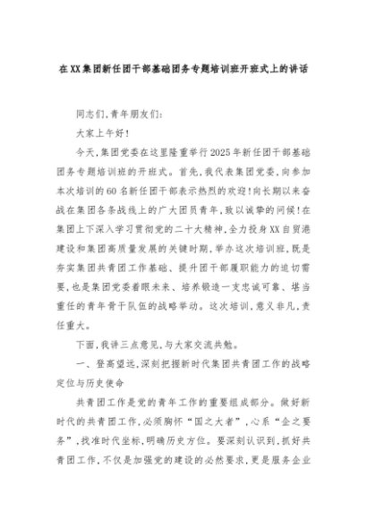 【七哥公文】2025年:在XX集团新任团干部基础团务专题培训班开班式上的讲话+更多免费公文+VX:QiGeGongWen2024