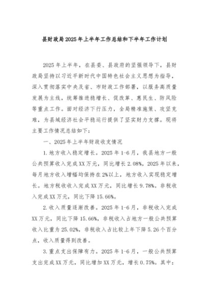 / 【七哥公文】2025年:县财政局2025年上半年工作总结和下半年工作计划+更多免费公文+VX:QiGeGongWen2024