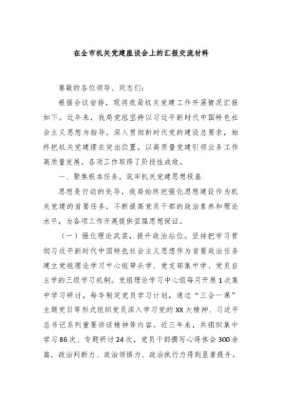 / 【七哥公文】2025年:在全市机关党建座谈会上的汇报交流材料+更多免费公文+VX:QiGeGongWen2024