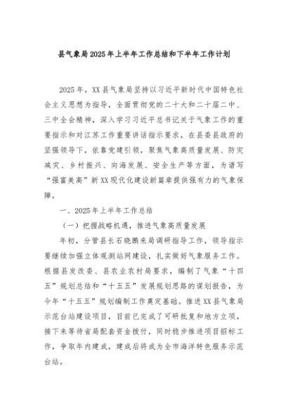 / 【七哥公文】2025年:县气象局2025年上半年工作总结和下半年工作计划+更多免费公文+VX:QiGeGongWen2024