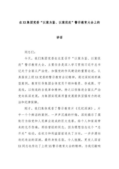 【七哥公文】2025年:在XX集团党委“以案为鉴、以案促改”警示教育大会上的讲话+更多免费公文+VX:QiGeGongWen2024