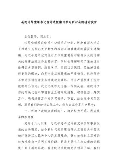 / 【七哥公文】2025年:县统计局党组书记统计造假案例学习研讨会的研讨发言+更多免费公文+VX:QiGeGongWen2024