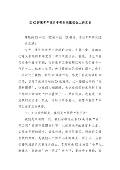 / 【七哥公文】2025年:在XX街道青年党员干部代表座谈会上的发言+更多免费公文+VX:QiGeGongWen2024