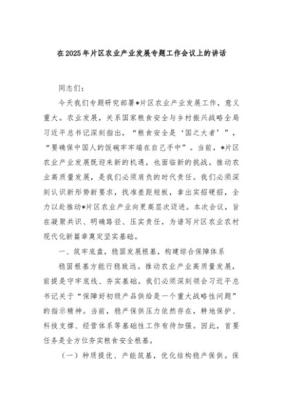 / 【七哥公文】2025年:在2025年片区农业产业发展专题工作会议上的讲话+更多免费公文+VX:QiGeGongWen2024