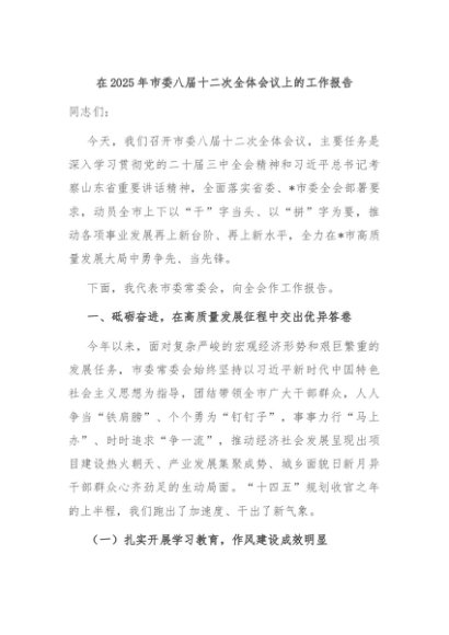 / 【七哥公文】2025年:在2025年市委八届十二次全体会议上的工作报告+更多免费公文+VX:QiGeGongWen2024