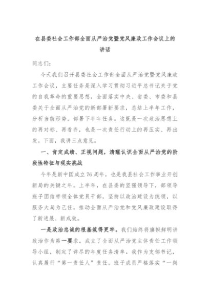 【七哥公文】2025年:在县委社会工作部全面从严治党暨党风廉政工作会议上的讲话+更多免费公文+VX:QiGeGongWen2024