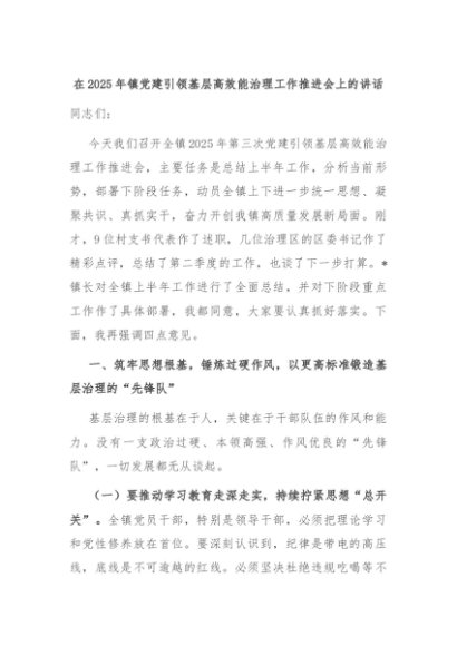【七哥公文】2025年:在2025年镇党建引领基层高效能治理工作推进会上的讲话+更多免费公文+VX:QiGeGongWen2024