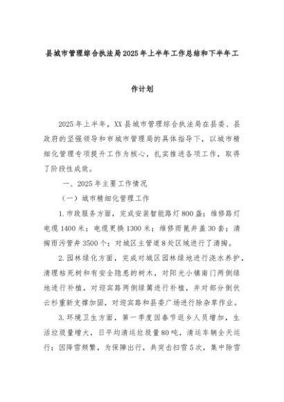 【七哥公文】2025年:县城市管理综合执法局2025年上半年工作总结和下半年工作计划+更多免费公文+VX:QiGeGongWen2024