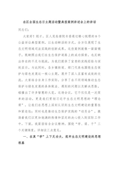 / 【七哥公文】2025年:在区全国生态日主题活动暨典型案例讲述会上的讲话+更多免费公文+VX:QiGeGongWen2024