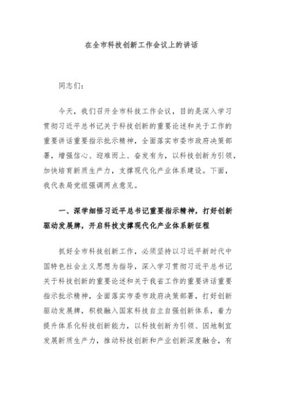 / 【七哥公文】2025年:在全市科技创新工作会议上的讲话+更多免费公文+VX:QiGeGongWen2024
