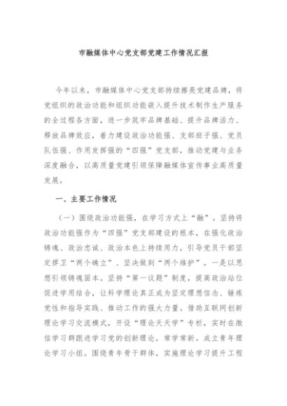 / 【七哥公文】2025年:市融媒体中心党支部党建工作情况汇报+更多免费公文+VX:QiGeGongWen2024