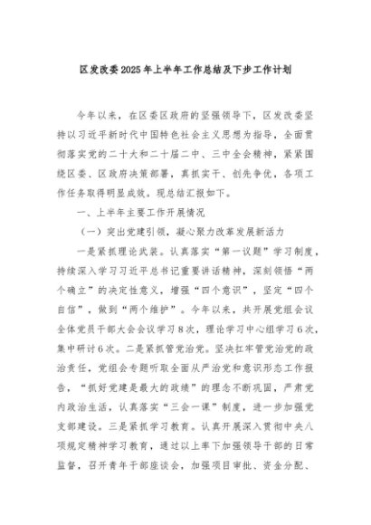 / 【七哥公文】2025年:区发改委2025年上半年工作总结及下步工作计划+更多免费公文+VX:QiGeGongWen2024