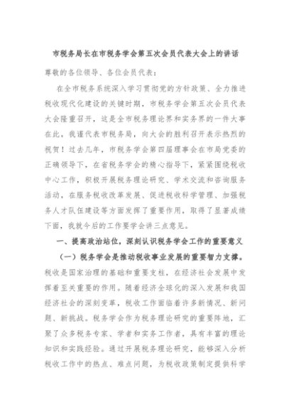 / 【七哥公文】2025年:市税务局长在市税务学会第五次会员代表大会上的讲话+更多免费公文+VX:QiGeGongWen2024