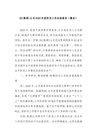 【七哥公文】2025年:XX(集团)公司2025年度防汛工作总结报告(精品)+更多免费公文+VX:QiGeGongWen2024