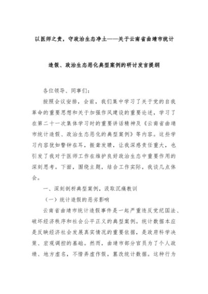 【七哥公文】2025年:以医师之责,守政治生态净土——关于云南省曲靖市统计造假、政治生态恶化典型案例的研讨发言提纲+更多免费公文+VX:QiGeGongWen2024