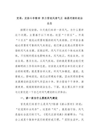 【七哥公文】2025年:党课:发扬斗争精神 努力营造风清气正 海晏河清的政治生态+更多免费公文+VX:QiGeGongWen2024