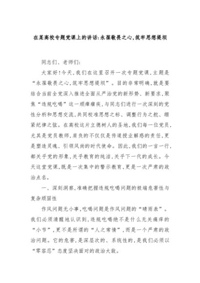 【七哥公文】2025年:在某高校专题党课上的讲话:永葆敬畏之心,筑牢思想堤坝+更多免费公文+VX:QiGeGongWen2024