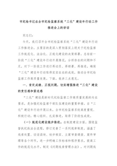 【七哥公文】2025年:市纪检书记在全市纪检监察系统“三化”建设年行动工作推进会上的讲话+更多免费公文+VX:QiGeGongWen2024