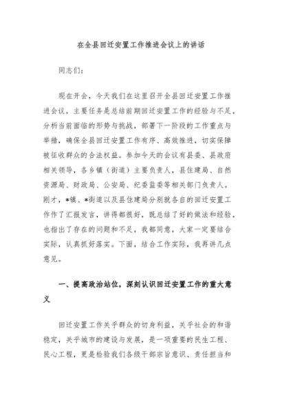 / 【七哥公文】2025年:在全县回迁安置工作推进会议上的讲话+更多免费公文+VX:QiGeGongWen2024