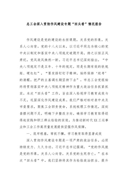 / 【七哥公文】2025年:总工会深入贯彻作风建设专题“回头看”情况报告+更多免费公文+VX:QiGeGongWen2024