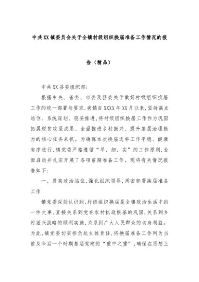 【七哥公文】2025年:中共XX镇委员会关于全镇村级组织换届准备工作情况的报告(精品)+更多免费公文+VX:QiGeGongWen2024