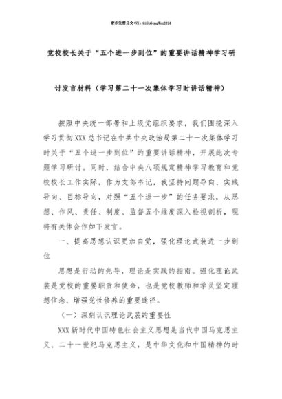 【七哥公文】2025年:【七哥公文】党校校长关于“五个进一步到位”的重要讲话精神学习研讨发言材料(学习第二十一次集体学习时讲话精神)_副本+更多免费公文+VX:QiGeGongWen2024+更多免费公文+VX:QiGeGongWen2024