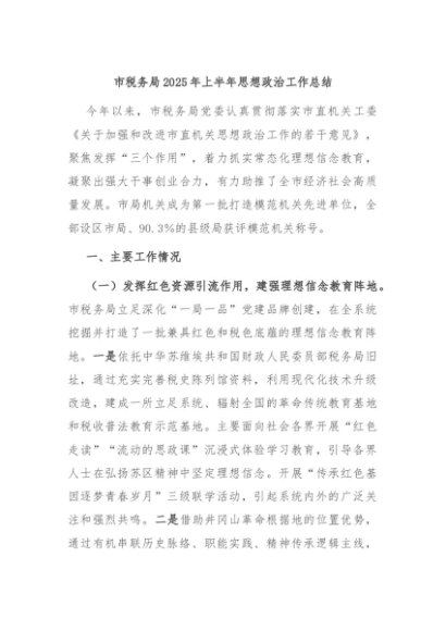 / 【七哥公文】2025年:市税务局2025年上半年思想政治工作总结+更多免费公文+VX:QiGeGongWen2024