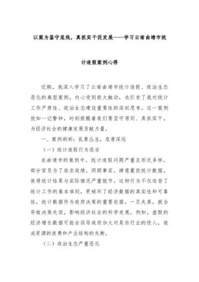 【七哥公文】2025年:以案为鉴守底线,真抓实干促发展——学习云南曲靖市统计造假案例心得+更多免费公文+VX:QiGeGongWen2024