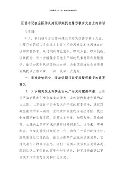 【七哥公文】2025年:【七哥公文】区委书记在全区作风建设以案促改警示教育大会上的讲话+更多免费公文+VX:QiGeGongWen2024+更多免费公文+VX:QiGeGongWen2024