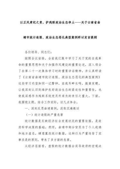 【七哥公文】2025年:以正风肃纪之责,护残联政治生态净土——关于云南省曲靖市统计造假、政治生态恶化典型案例研讨发言提纲+更多免费公文+VX:QiGeGongWen2024