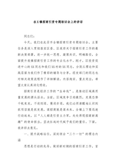 / 【七哥公文】2025年:在X镇招商引资专题培训会上的讲话+更多免费公文+VX:QiGeGongWen2024