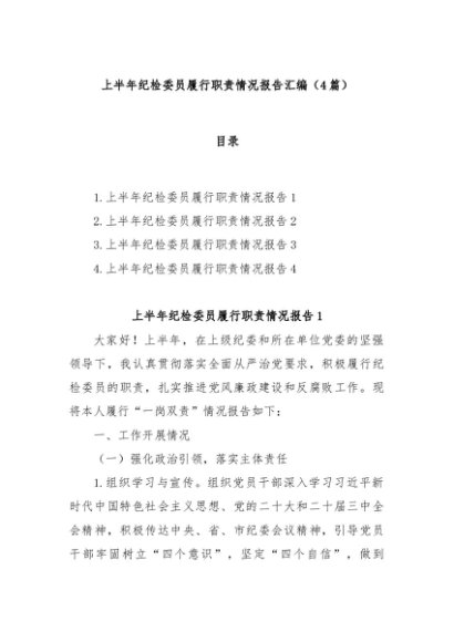 / 【七哥公文】2025年:(4篇)上半年纪检委员履行职责情况报告汇编+更多免费公文+VX:QiGeGongWen2024