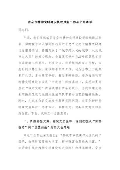 / 【七哥公文】2025年:在全市精神文明建设提级赋能工作会上的讲话+更多免费公文+VX:QiGeGongWen2024