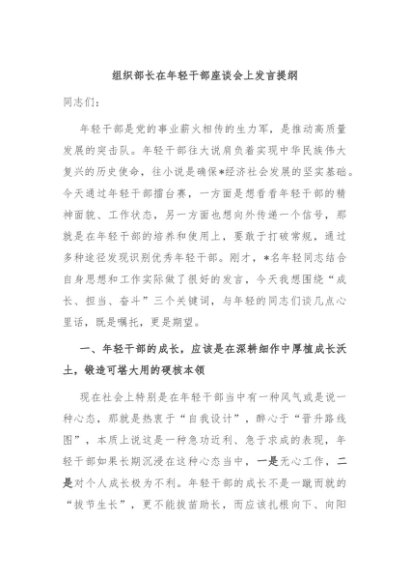 / 【七哥公文】2025年:组织部长在年轻干部座谈会上发言提纲+更多免费公文+VX:QiGeGongWen2024