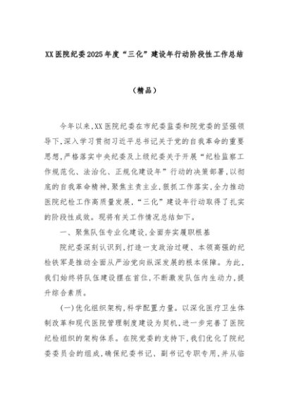 【七哥公文】2025年:XX医院纪委2025年度“三化”建设年行动阶段性工作总结(精品)+更多免费公文+VX:QiGeGongWen2024