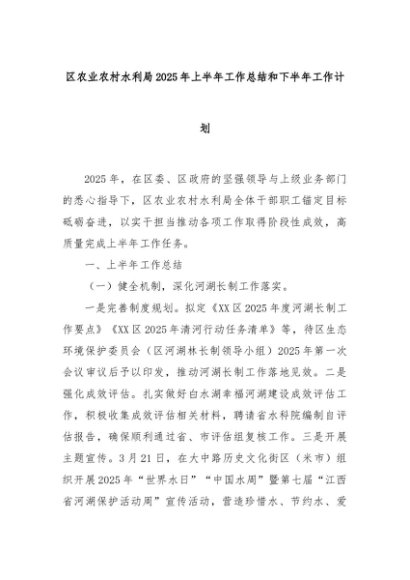 【七哥公文】2025年:区农业农村水利局2025年上半年工作总结和下半年工作计划+更多免费公文+VX:QiGeGongWen2024