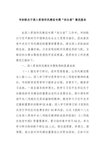 / 【七哥公文】2025年:市妇联关于深入贯彻作风建设专题“回头看”情况报告+更多免费公文+VX:QiGeGongWen2024
