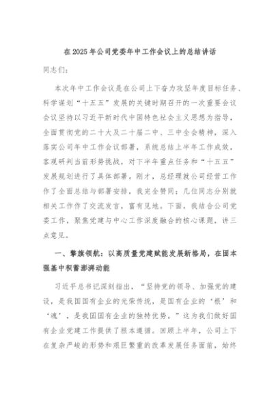 / 【七哥公文】2025年:在2025年公司党委年中工作会议上的总结讲话+更多免费公文+VX:QiGeGongWen2024