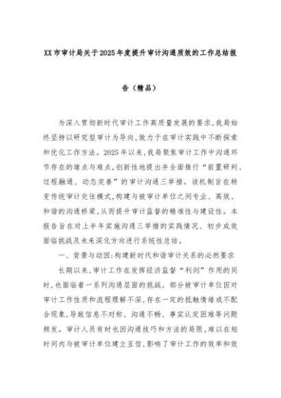 【七哥公文】2025年:XX市审计局关于2025年度提升审计沟通质效的工作总结报告(精品)+更多免费公文+VX:QiGeGongWen2024