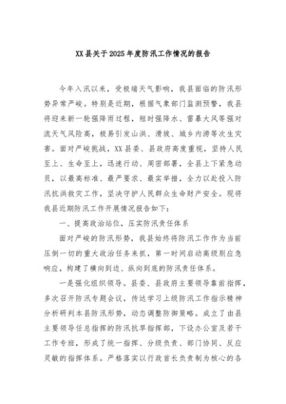 / 【七哥公文】2025年:XX县关于2025年度防汛工作情况的报告+更多免费公文+VX:QiGeGongWen2024