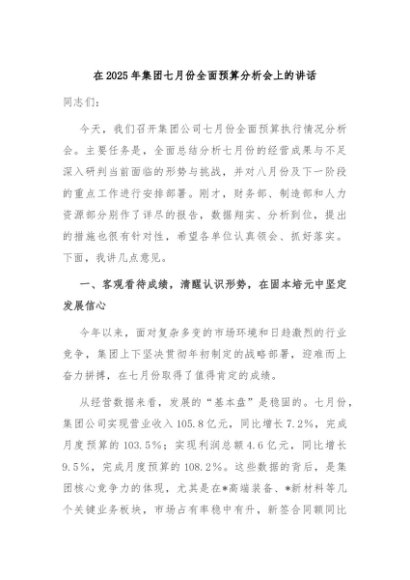 / 【七哥公文】2025年:在2025年集团七月份全面预算分析会上的讲话+更多免费公文+VX:QiGeGongWen2024