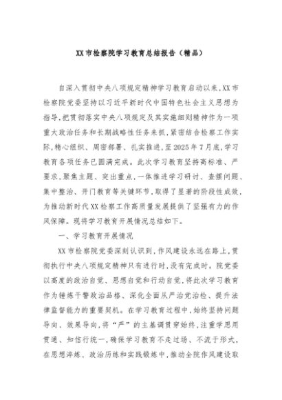 / 【七哥公文】2025年:XX市检察院学习教育总结报告(精品)+更多免费公文+VX:QiGeGongWen2024