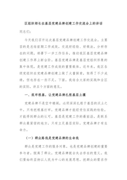 / 【七哥公文】2025年:区组织部长在基层党建品牌创建工作交流会上的讲话+更多免费公文+VX:QiGeGongWen2024
