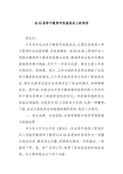 / 【七哥公文】2025年:在XX县学习教育评估座谈会上的讲话+更多免费公文+VX:QiGeGongWen2024