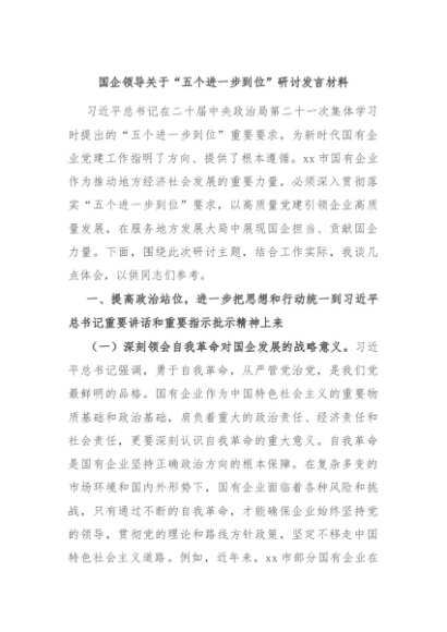 / 【七哥公文】2025年:国企领导关于“五个进一步到位”研讨发言材料+更多免费公文+VX:QiGeGongWen2024